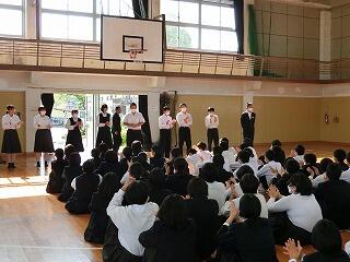 来週から数学の授業・調理実習等で、はげまし隊の活動がスタートします。今日は、スタートを前に1年生との対面式が実施されました。