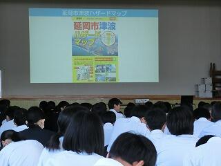延岡市危機管理課・延岡市消防本部の方を招き、南海トラフ大地震を想定した防災講話を実施しました。
