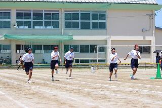 体育大会まで10日前になりました。3年の学年体育でも学級対抗リレーの練習です。熱中症に気を付けて行きましょう。水筒の準備も忘れずに!!