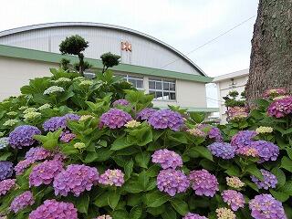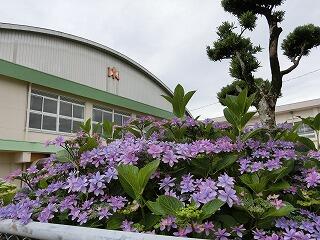 校内のアジサイも色鮮やかに咲いています。梅雨が近づいてきているようです。