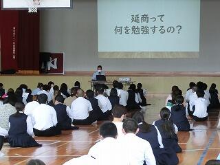 9月から延岡中学校に常駐されるALTの先生の自己紹介をリモートで行いました。本日の昼休みも、多くの生徒が英語で話しかけていました。英語でコミュニケーションをとれる多くの機会があります。自分から進んで英語で話しかけてみてください。