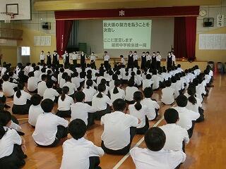 生徒会が実施するさまざまな集会が実施されています。1年生にも早く中学校生活に慣れて欲しいということから実施される集会です。