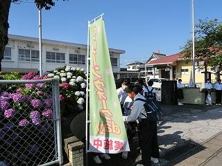 初めて1年生も参加しました。給食の時間の放送で、生徒会役員から活動報告もありました。私たちは、地域に見守られています。地域のためになる活動をこれからも考えて行きましょう。