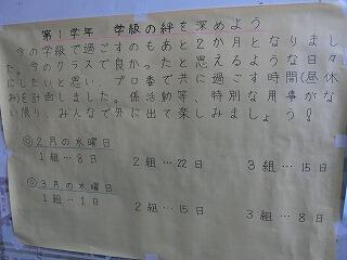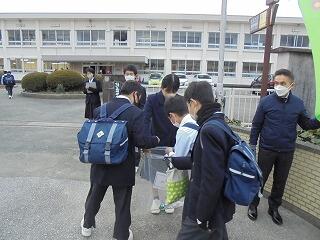 本日は特別時間割の5時間授業です。本日が今年度最後の給食となります。本日の生徒の皆さんの下校予定時刻は15時00分頃を予定しています。