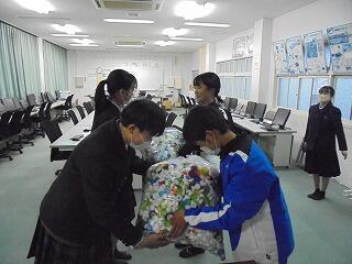 本日の給食のメニューは、ぜんざいでした。中味は、餅ではなく食べやすい「白玉」と「いも餅」でした(写真は反射してうまく撮れませんでした)。1月11日が「鏡開き」であることからの献立です。給食によって日本の昔からある慣習を思い出すことができます。給食の献立を作っていただく栄養教諭の先生に感謝しながら生徒のみなさんも食べていました。