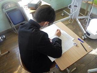 本日は特別時間割の5時間授業です。本日は第3回定期テストが予定されています。本日までがテストに伴う部活動停止期間となっています。本日の生徒の皆さんの下校予定時刻は15時15分頃を予定しています。