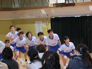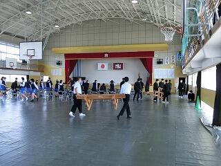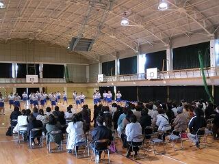 男女1000メートル走の後、各学級選抜を3チーム、社会体育女子駅伝1チームの4チームでタスキをつなぎました。選手以外の応援もあり、盛り上がった大会でした。