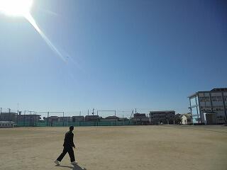 ★風は冷たいもののとても良い天気です。先生方もグラウンドで生徒たちとサッカーを楽しんでます。