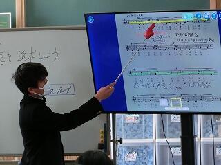 ■「浜辺の歌」を題材にICT機器を活用した音楽の研究授業が行われました。
