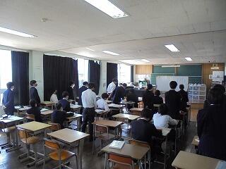 本日は特別時間割の4時間授業です。本日は修学旅行(2年生)最終日です。本日の生徒の皆さんの下校予定時刻は13時50分頃を予定しています。なお、本日がテスト前最後の部活動となります。明日からはテスト前部活動停止期間に入ります。週末は時間を有意義に使ってほしいと思います。
