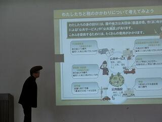 ①税金の使われ方について説明(演劇を交えて分かりやすく説明していただきました)