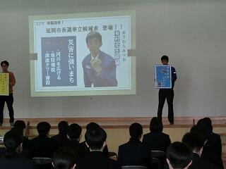 次に、未来市長として「幸動」に繋がるアイデアを他校の生徒会役員と考え、市長に提案しました。