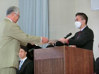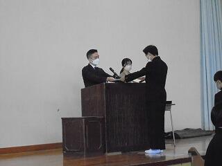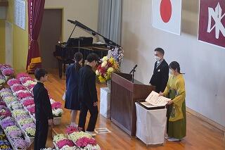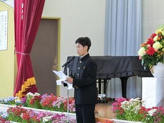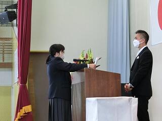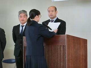 【ご退職の先生に感謝状贈呈】 【生徒代表からのお礼のことば】