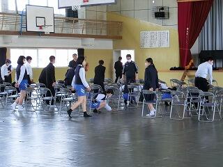 本日は2、3校時に卒業式練習、4、5校時に卒業式準備(2、3年生)が予定されています。本日の生徒の皆さんの下校予定時刻は15時00分頃を予定しています。