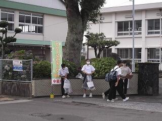 本日は終業の日となっています。本日の終業式は今般の新型コロナウイルス感染症対策、熱中症対策としてリモートで行います。本日の生徒の皆さんの下校予定時刻は12時15分頃を予定しています。なお、明日から夏休みが始まりますが、感染症対策の徹底、事件事故の防止に努めながら有意義に過ごしてほしいと考えています。