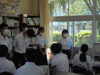 本日は本校と西階中学校の生徒会意見交換会が本校図書室にて行われました。それぞれの学校での生徒会に役割等を情報交換し、今後の活動の活性化に繋げようという取り組みです。