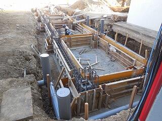 (下、渡り廊下の改修工事の様子、2階部分のコンクリート流し込みの様子です)