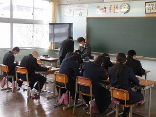 本日は火曜校時の6時間授業です。3年生は県立高校の一般入学者選抜学力検査の初日です。26名が受検します。本日受検しない3年生は、4時間で下校(給食なし)となります。
