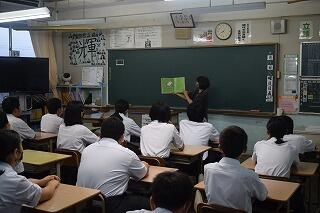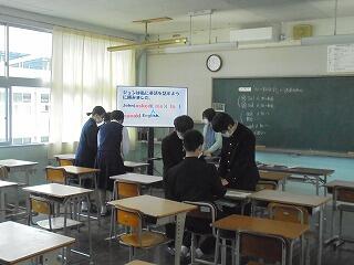 (下、3月4日の学活の研究授業の様子、1年2組です)