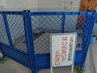 中校舎に多目的トイレを工事中です。日常的な活用や災害避難者用となってます。