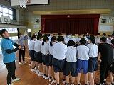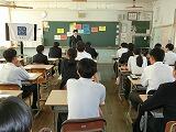 フットサル競技やボクシング・K-1競技で活躍した講師2名を招き、JFL夢の教室を実施しました。2年生③クラスを2時間筒授業していただきました。2時間のうち前半は、夢先生と体育館でゲームをしました。ボールや身体を使ったゲームでは、途中で作戦タイムを設けながら、協力することの大切さを学びました。後半は、各教室で夢先生の体験からさまざまなことを学びました。生徒たちの感想は、「夢を追いかけていれば、挫折しても周りで助けてくれる大人がいること」「夢をことばに出しておくと夢が叶いやすいこと」「挫折したときにかけてもらった言葉を大切にしていること」「今成功している人も、影で努力をしていること」・・・多くのことを生徒たちは学ぶことができた貴重な授業になりました。