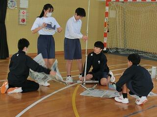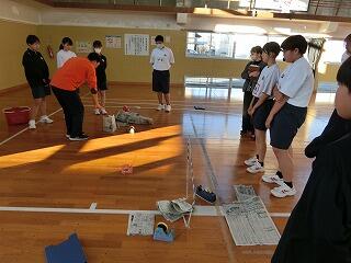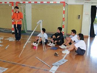 宮崎県むかばき青少年自然の家から講師2名を招き、本校体育館で生徒会リーダー研修会を実施しました。体験活動をとおして、リーダーとして必要な力について考えました。生徒からは、「協力することの大切さを学んだ」「意見をまとめることの難しさを感じた」「自分の考えを人に伝える難しさを感じた」「様々な人の意見を聞くことが必要だと思った」・・・など、多くのことを体験をとおして感じた2時間でした。これからの生徒会活動が楽しみです。
