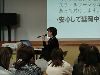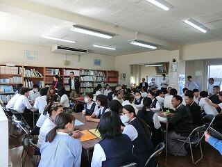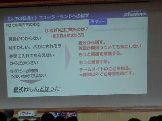 また、講師の方のニュージーランド留学などの様々な経験から、現在の仕事に就くまでの過程を話していただき、仕事選びをするために「さまざまなことに興味をもつこと」「何にでもおもいきって挑戦すること」などが大切であるという話をされました。生徒自身も将来のことについて考える大変よい機会になりました。