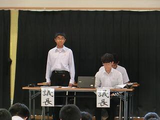 生徒総会が実施されました。新役員による運営でしたが、これからの延岡中をさらによくしたいという前向きな意見や対策が出されていました。