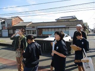 本校では、総合的な学習の時間に「地域の担い手として防災・減災について真剣に探究する生徒の育成」も目標に、各学年さまざまな取り組みを実施しています。第2学年は、地域の方々と自分の住んでいる地域を「防災マップ」を元に巡り、津波避難時に危険な箇所等について調べました。