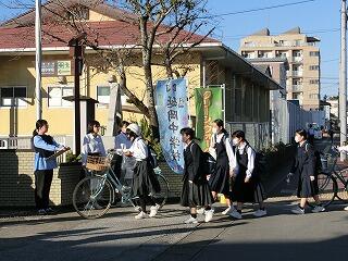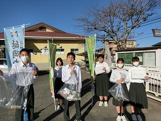 今日は月に1度のクリーン・ウォークディ(生徒会行事)です。登校時に通学路のゴミ拾いを実施しました。多くの生徒が参加していました。