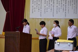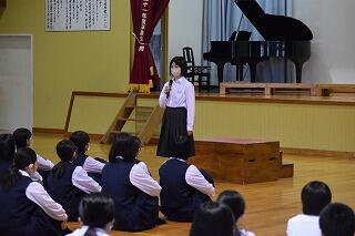 生徒会文化副部長のお礼の言葉では、「図書館などでこの話を調べて見たいと思った。」と感想が述べられました。