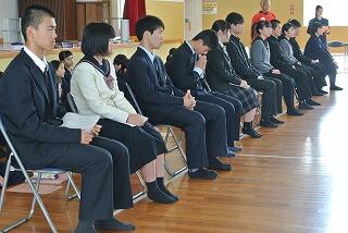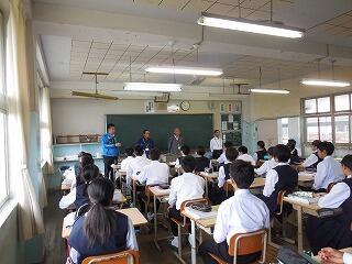 1,2年生は、高校に向けて具体的な話を聞いて、受験や進学のイメージをもつことができました。当日は、県立高校一般入試日でしたので、「来年のこの時期に・・・」「2年後のこの時期に・・・」と、これから自分たちも高校入試に向かう実感を高めることもできたと思います。