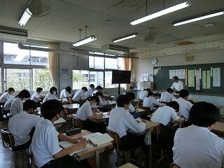 1学期最後の参観日でした。3年生は、私立高校説明会、1年生は、懇談の中で来年度の修学旅行説明会も併せて実施しました。3年生は、興味のある高校を複数校聞ける形で実施しましたが、生徒も自分の将来について真剣に考える姿が見られました。説明していただいた各私立高校の先生方からも生徒の真剣さが伝わってきたという言葉をいただきました。