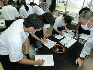 ワークシートに記入したり、講師からの質問に学級代表が答えるかたちで講義はすすみました。