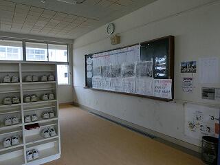 現在、本校に勤務されている末藤先生も戦争を体験されています。昨日の給食時間の放送では、体験談を話していただきました。そして、自作の資料や集められた写真を下足室周辺に掲示しています。生徒たちも、関心をもって見ている姿が見られます。この資料・写真は、7月11日(火)の参観日まで掲示していますので、保護者の方々もぜひ御覧ください。