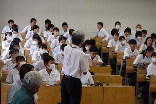 身を乗り出すように生徒たちは聞いています。関西弁のお話が生徒にも面白かったようで、最後の生徒のお礼の言葉も関西弁で行ったようです。ボランティアの方も喜ばれていました。