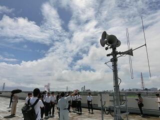 夏休みに入ってすぐの8月4日(金)に、生徒会が企画・運営に当たる「ミステリーバスツアー」を実施しました。バスで巡るのは、延岡市津波ハザードマップに掲載してある延岡中校区の指定緊急避難場所38か所の中の数か所です。実際に避難施設に登ったり、バスの中から見学したりしました。この活動のねらいは、