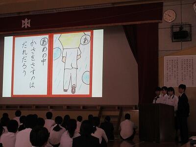 本日の「諸活動」は「読書活動」でした。1年生は、読み聞かせボランティアの皆様に絵本の朗読をしていただきました。絵本を読むとなぜこんなにほっこりした気分になるのでしょう。読み聞かせの皆様ありがとうございました。