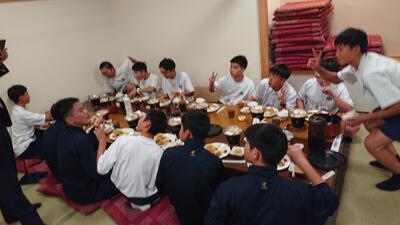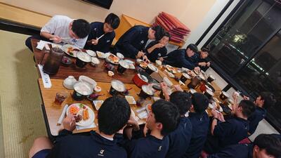 無事宿泊先に到着し、夕食をお腹いっぱいおいしくいただきました。この後お風呂に入り、22時に消灯です。明日も頑張ります。