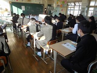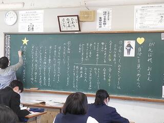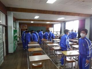本日は月曜校時の6時間授業です。3年生は県立高校一般入試の1日目です。53名の3年生が受検に臨んでいます。力を出してほしいと願っています。