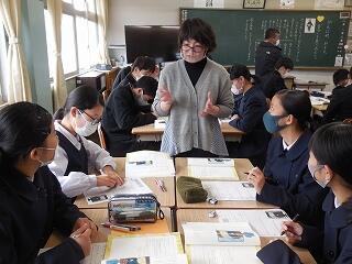 (下、4時間目の2年1組社会の研究授業の様子です)