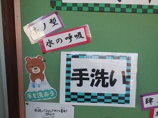 (下、保健室の掲示版、コロナ対策です。是非見に来てください)