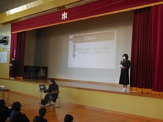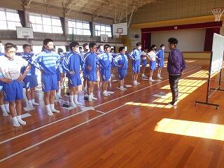 (下、昼休みに部活動生集会を行いました。学校生活、生活面、保健安全面についての指導を各先生方が行いました)