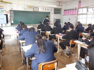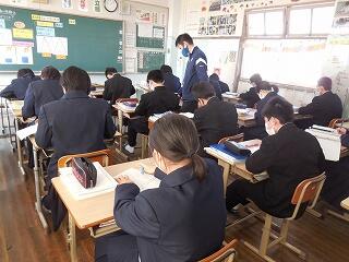 本日は火曜校時で6時間授業です。3年生は4時間授業で、4時間目に明日の県立高校一般入試事前指導があります。3年生の受験シーズンも大詰めとなりました。健康管理をしっかりしてベストを尽くして欲しいと思います。