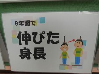(下、保健室前の掲示物、身長を測ってみたくなる掲示です)