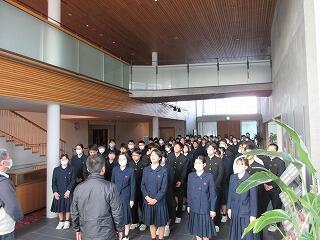 のべおか花物語の後、花のモニュメントで使用した花の苗をAEON九州、ホームワイド出北店から贈呈していただきました。生徒会が代表して受け取りました。3月の卒業式に向けて、学校内を花で彩ります。ありがとうございました。