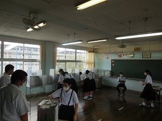 本日は6時間授業です。5・6時間目には、リモートによる生徒会立会演説会、そして投票も実施されます。投票は学年毎に行われます。今回は1年生が8名、2年生が12名立候補してくれました。次の生徒会活動が、新役員の皆さんの下で、さらに発展することを期待します。