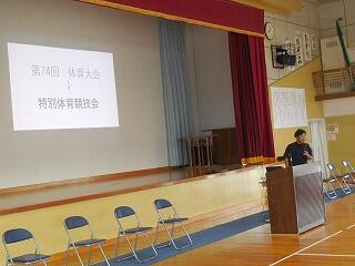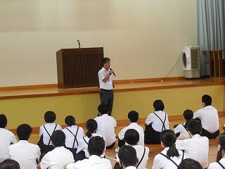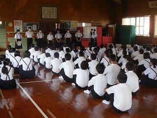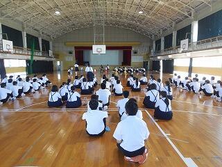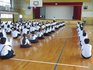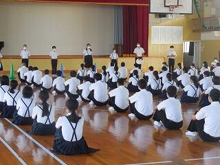 本日、2年生が修学旅行で長崎に向けて出発しました。1・3年生は朝の時間に学年集会を行いましたあ。
