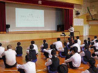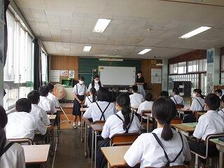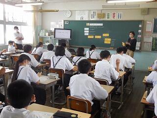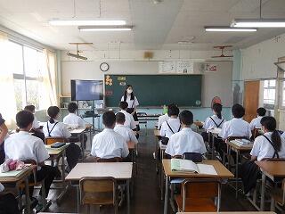 本日は水曜校時の5時間授業です。ALTのチャック・シオン先生の来校日です。5時間目は、1・3年生は道徳の授業、2年生は明日からの修学旅行のための事前指導を行いました。