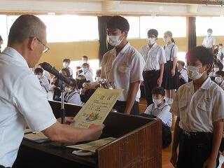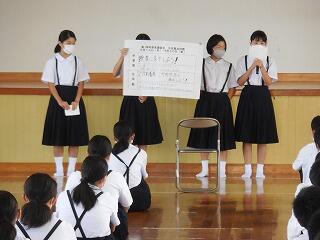 本日は6時間授業です。9月6日(日)の宮崎県の発表により、延岡市は感染未確認圏域(緑圏域)となりました。そのことを受けて、本校では段階的にかつ感染症対策をしっかりと行いながら、行事・集会等を通常の形式で実施してまいります。本日は、2・3年生が朝の時間に学年集会を行います(1年生は来週の火曜日)。午後の総合的な学習の時間は、各学年キャリア教育を進めてまいります。